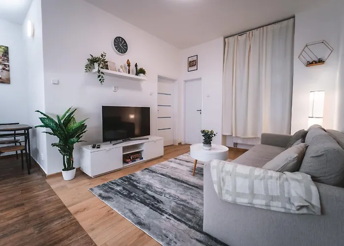 Die 65 m² große Ferienwohnung Swanky Prague Retreat befindet sich im Stadtviertel Praha 07, in einer Entfernung von nur 5 Gehminuten vom Vnitroblock.